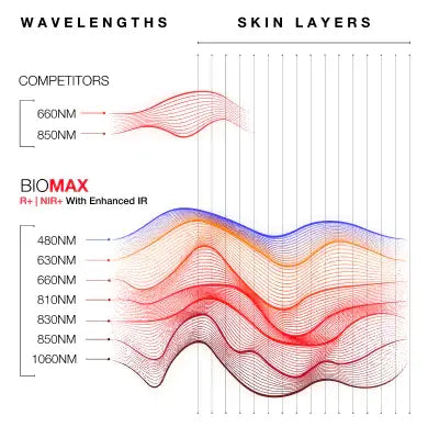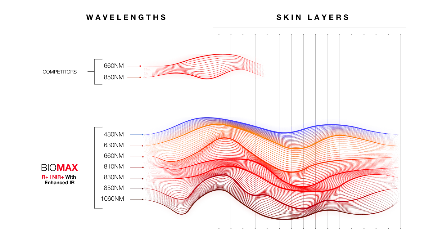 Our exclusive patent-pending R+|NIR+ multi-wave spectral output delivers the most advanced red light therapy available: Harnessing seven different red and infrared wavelengths of light for truly next level therapy for all applications.